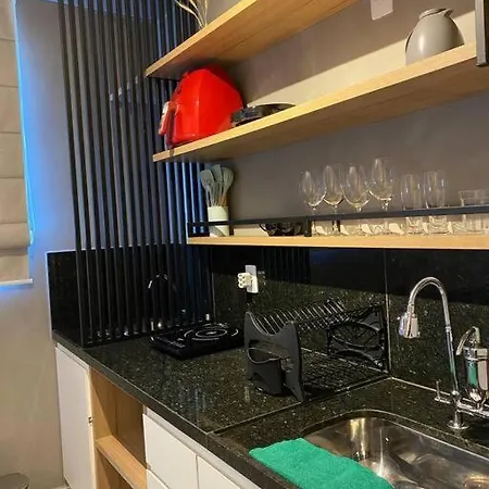 El Apartamento Studio Completo - próximo à Savassi dispone de una cocina con un hervidor eléctrico, una nevera y cristalería. El Apartamento Studio Completo - próximo à Savassi está a 5 km del Aeropuerto Belo Horizonte-Pampulha, facilitando el acceso para los viajeros.